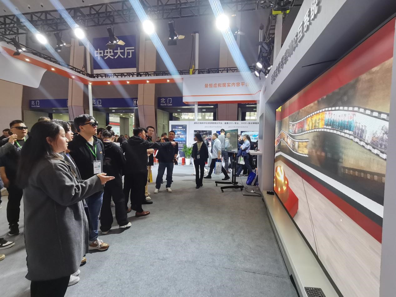 2023年4月8日-4月10日,以“校地聚合·产教融合高质量发展”为主题的第58·59届中国高等教育博览会在重庆国际博览中心盛大启幕。重电·曼恒数字产业学院联合虚拟仿真研发创新实训基地研发的思“享”学堂VR产品受邀参加展览。