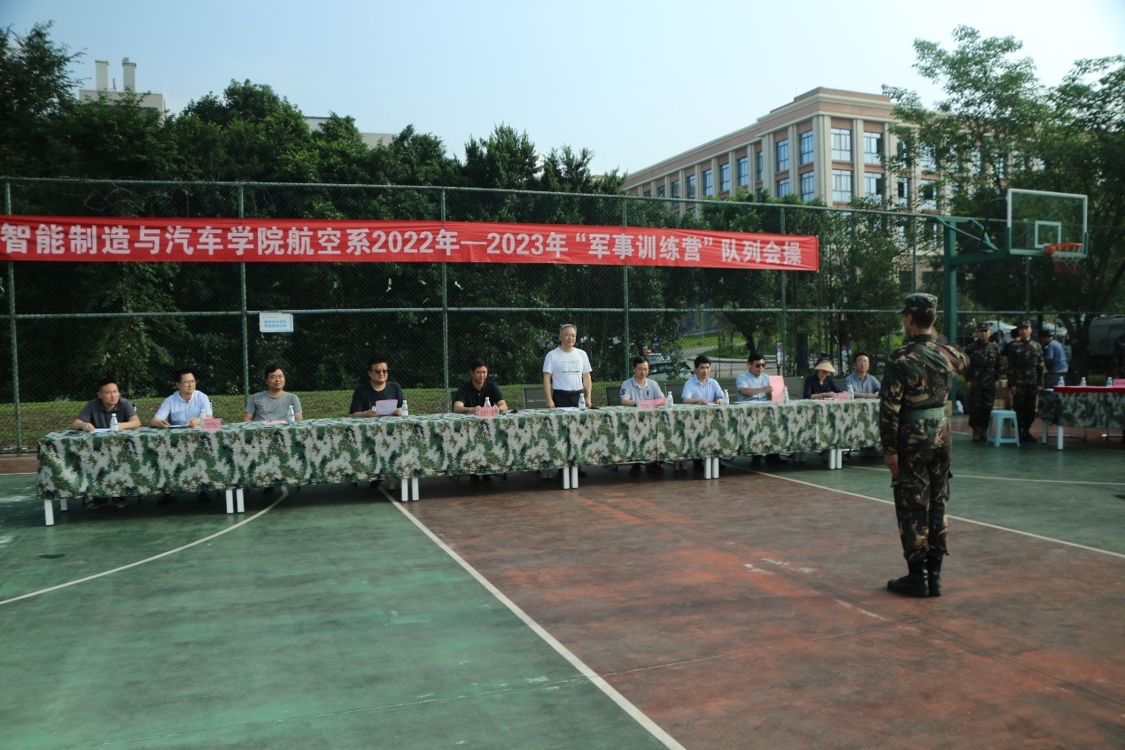 党委学工部江兵副部长、智能制造与汽车学院严世同书记、丁伟副书记、王勇副院长、张俊峰院长助理、陈世江主任、白玥婕科长、吴梁洲科长、航空系训练营营长陈建老师出席了本次队列会操活动。在党委学工部江兵副部长致辞完后,指挥员向智能制造与汽车学院严世同书记汇报本次队列会操正式开始。